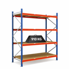 Estante metálica robusta e ideal para cargas muito volumosas e/ ou pesadas.